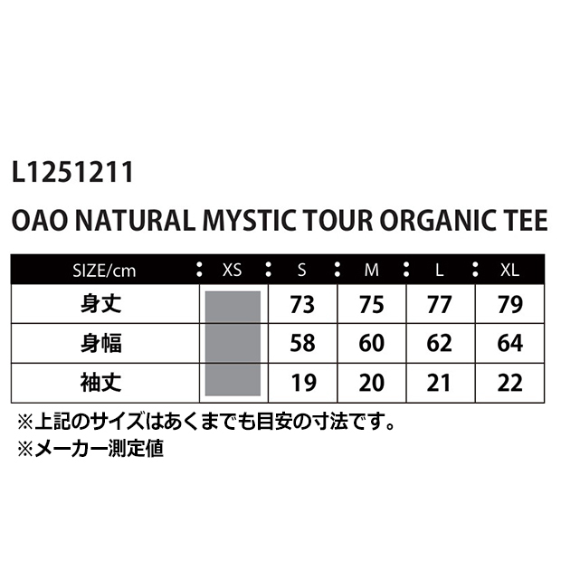 OAO ナチュラルミスティックツアー オーガニック半袖Tシャツ