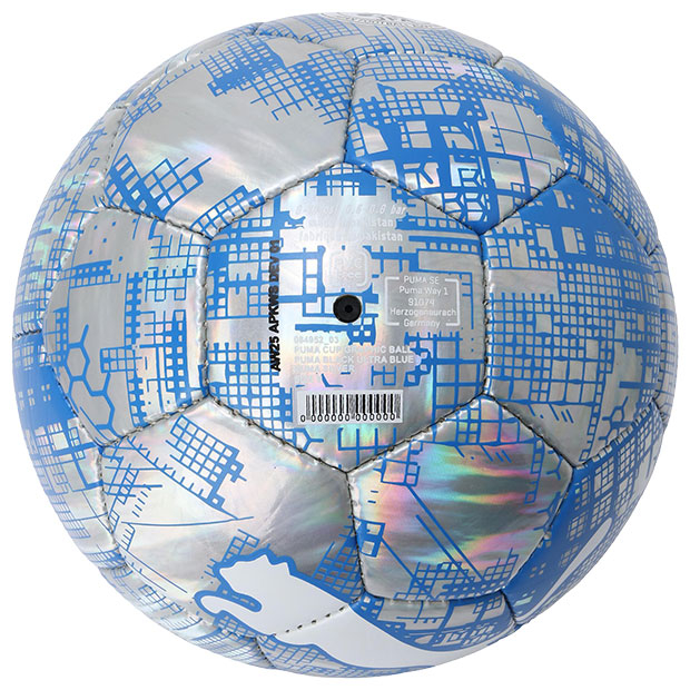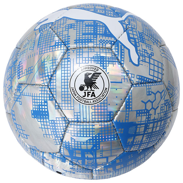 グラフィックデザインとプーマキャットロゴが印象的なサッカーボール。