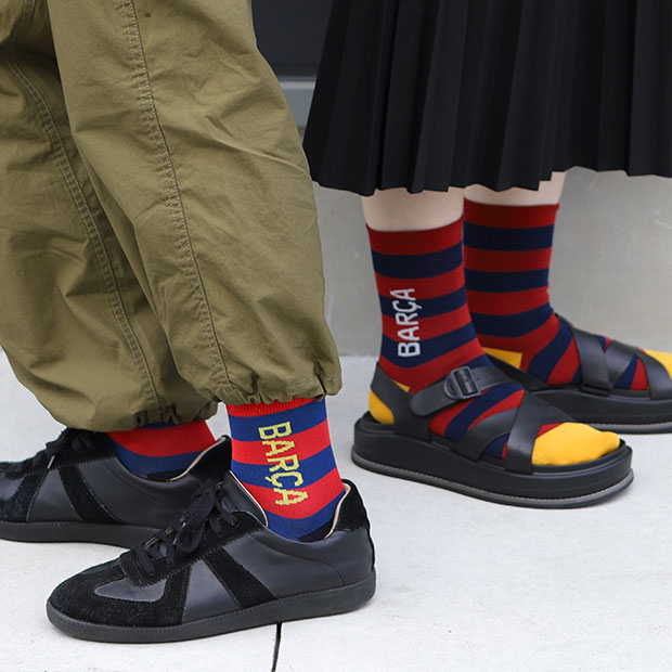 レビュー アイテム説明 発売月 2025/07 価格 ¥1,980(税込) 詳細情報 タビオスポーツ、カジュアルソックス。 ボーダーのリバーシブルスカーフからインスパイアされたデザインのグラフィックソックス。スペイン・リーガエスパニョーラ、FCバルセロナモデル。 品質:コットン82%、ナイロン17%、ポリウレタン1% サイズ:M(25.0-27.0cm) モデル:2025年春夏
