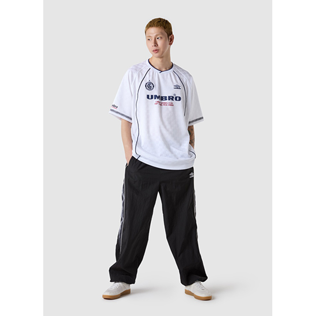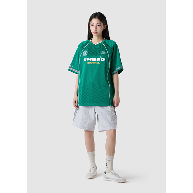 アンブロ、大人/メンズ用Tシャツ。 独自性のあるストリートファッションとして若者を中心に人気の、韓国企画の限定アパレルコレクション「UMBRO KOREA COLLECTION」。過去のユニフォームで使用されていたチェッカーボードデザインを再現し、レタリングロゴグラフィックを採用。メッシュ素材が快適な着心地を提供。 ◆取り扱い店舗限定アイテム 品質:ポリエステル100% モデル:2025年秋冬 |