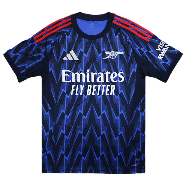 レビュー アイテム説明 発売月 2025/11 価格 ¥18,480(税込) 詳細情報 イングランド・プレミアリーグ、アーセナル、2025-2026年シーズンモデル、アウェイ用レプリカユニフォーム。 選手着用ユニフォームのレプリカモデル。ライトブルーとネイビーでアイコニックな稲妻模様をあしらった、インパクトのあるデザイン。優れた吸湿性を発揮するAEROREADYテクノロジーにより、快適な着心地を実現。スリムフィット仕様。大人/メンズ用。 ◆マーク入り(41 RICE/CUPフォント) 品質:ポリエステル100% カラー:ナイトインディゴ×グレーツー モデル:2025年秋冬