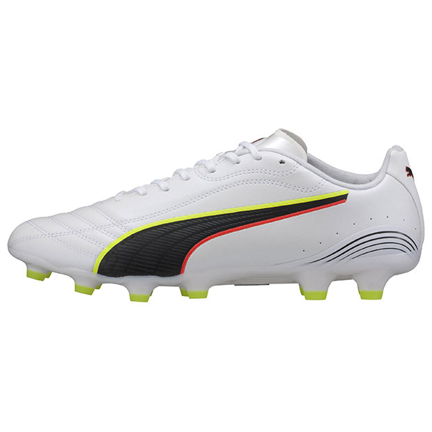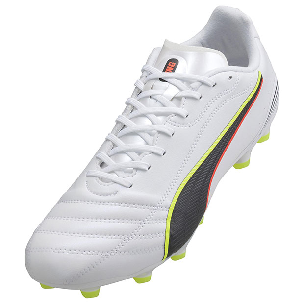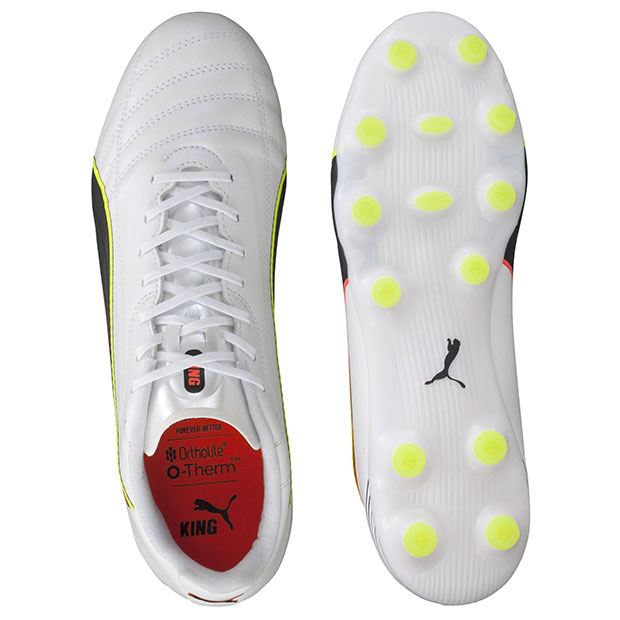 プーマのボールコントロールの技術を全て詰め込んだ、さらに優れた新世代のKINGシリーズ、アルティメットモデルスパイク。超ソフトなトータルタッチ+アッパーが、ボールとの一体感を向上。軽量PEBAアウトソールが、固い地面と人工芝の両方で安定性と敏捷性を実現。低反発素材「Ortholite」を使用したインソールを採用。ジャパンラスト搭載モデル。