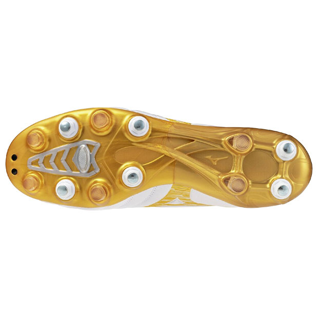 ミズノ、大人/メンズ用サッカースパイク。ブライトゴールドパック(BRIGHT GOLD PACK)。