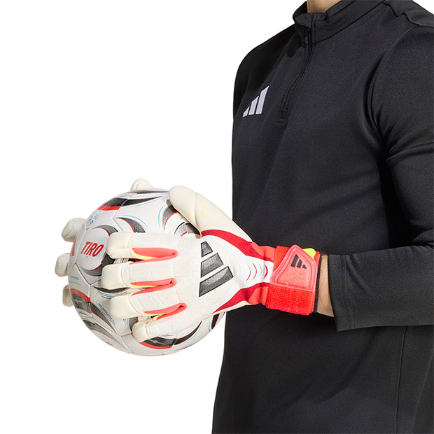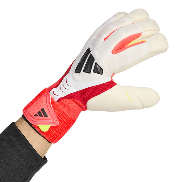 レビュー アイテム説明 発売月 2026/01 価格 ¥19,800(税込) 詳細情報 アディダス、大人/メンズ用ゴールキーパーグローブ。 プレデターシリーズとのデザイン連動モデル。優れたグリップ力と衝撃吸収性を備えたモデル。通気性に優れたフュージョンメッシュを使用し、快適なグローブ内環境をキープ。URG 2.0+テクノロジーが、優れたグリップ力と快適さを両立。ハイブリッドカットにより、手のひら側と指先に広いフォームコンタクトエリアを確保。ハイブリッドカットにより、手のひら側と指先に広いフォームコンタクトエリアを確保。解剖学的形状に基づいたパンチングゾーンにより、ボールを弾くときのサポート力とクッション性が向上。伸縮性と通気性に優れたFusionMeshをバックハンドに採用し、動きを妨げない快適さを実現。伸縮性に優れたストラップが安定した装着感を実現。 ◆ハイブリッドカット カラー:ホワイト×ルシッドレッド×ブラック モデル:2026年春夏