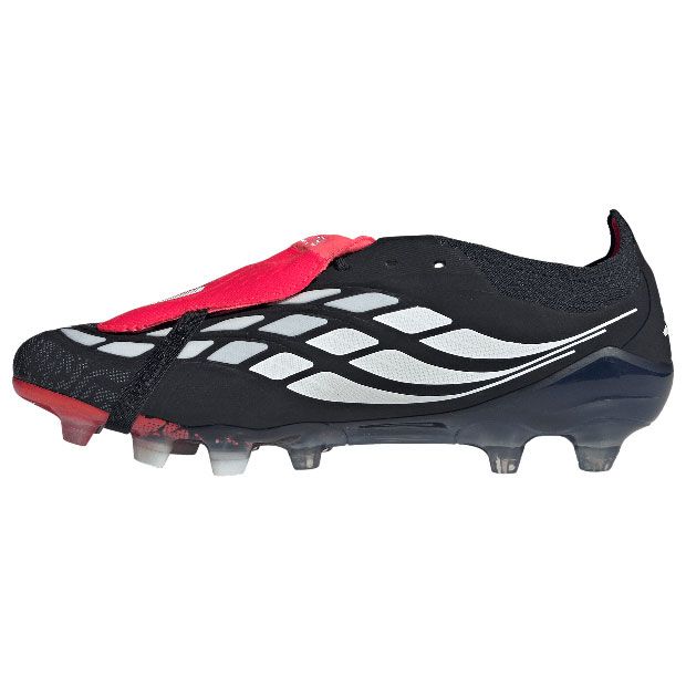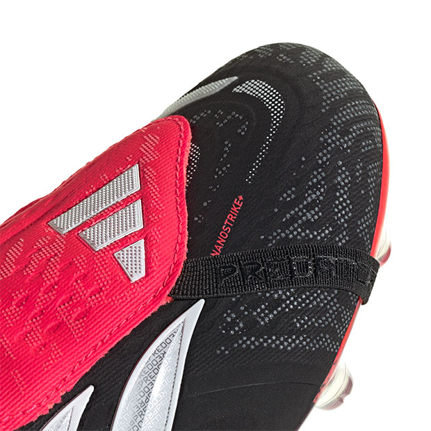 正確さが結果を生む。足元のボールさばきの精度を向上させるために設計されたサッカーブーツ、エリートモデルスパイク。フォールディングタン仕様。足の形に合わせて自在に伸びるニット素材「プライムニット」を履き口に採用し、快適な足入れとフィット感を実現。主要な接地面にクッション材を採用し、快適性とソフトなボールタッチをもたらすハイブリットタッチ設計。プレデターテクノロジーを戦略的に配置したストライクスキンが、シュートゾーンでのボールグリップを向上。硬さのあるハードグラウンドでの最適なグリップ性、耐久性に貢献する「HGトラクションフレーム」を搭載。アディダスフットウェアラボシュークリエーター・大森敏明氏とのコラボレーションによって、現代の日本のサッカープレーヤーに向けて開発された足型「ジャパンマイクロフィットラスト」を採用。足の形状を忠実に再現し、360°のフィット感、素足感覚を追求。土・ロングパイル人工芝グラウンド対応。