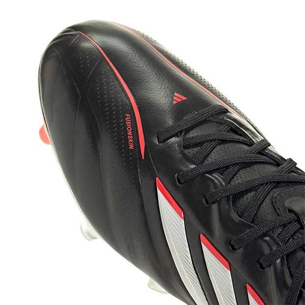 伝統と革新を融合し、快適性・ボールタッチ・フィット感にこだわったサッカースパイク、エリートモデル。フュージョンスキンテクノロジーテクノロジーがレザーから他素材への切り替えをシームレスにし、柔らかなタッチとレザーならではの独自の質感を実現。3Dハプティックプリントがボールにグリップし、優れたコントロールを実現。軽量アウトソール「AG Traxion」を搭載し、円錐型スタッドが最適なグリップ力を提供。人工芝・天然芝グラウンド対応。