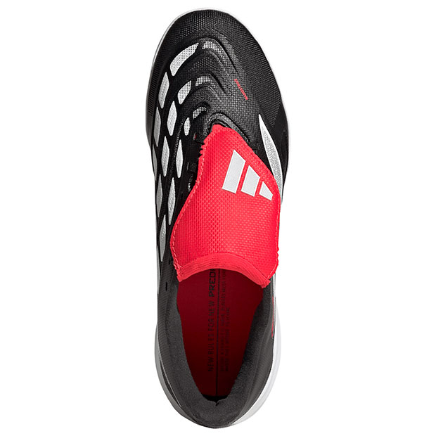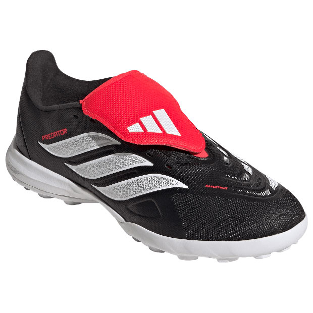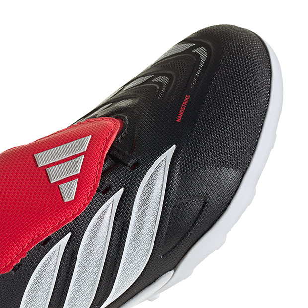 正確さが結果を生む。足元のボールさばきの精度を向上させるために設計されたサッカーブーツ、ターフトレーニングモデル。フォールディングタン仕様。テキスタイル素材をベースにコーティングを施すことで耐久性を向上し、快適さと柔らかなボールタッチに貢献するハイブリッドフィール設計。ストライクゾーンへ戦略的に配置したのフィンがボールとのグリップ力を高め、正確なシュートに貢献。人工芝コート対応。