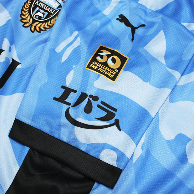 2026年明治安田百年構想リーグ着用ユニフォームのレプリカモデル。フットボールの祭典が行われ、リーグの歴史が変わる特別な年を記念した、「HEAT OF FOOTBALL」をコンセプトにしたスペシャルユニフォーム。クラブの象徴であるフロンターレブルーを、濃淡のグラデーションで描いたカモフラージュに採用し、ピッチを縦横無尽に駆ける選手たちの躍動と闘志を表現。クラブ創立30周年記念ワッペン付き。大人/メンズ用。