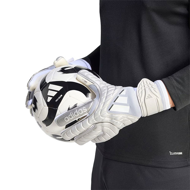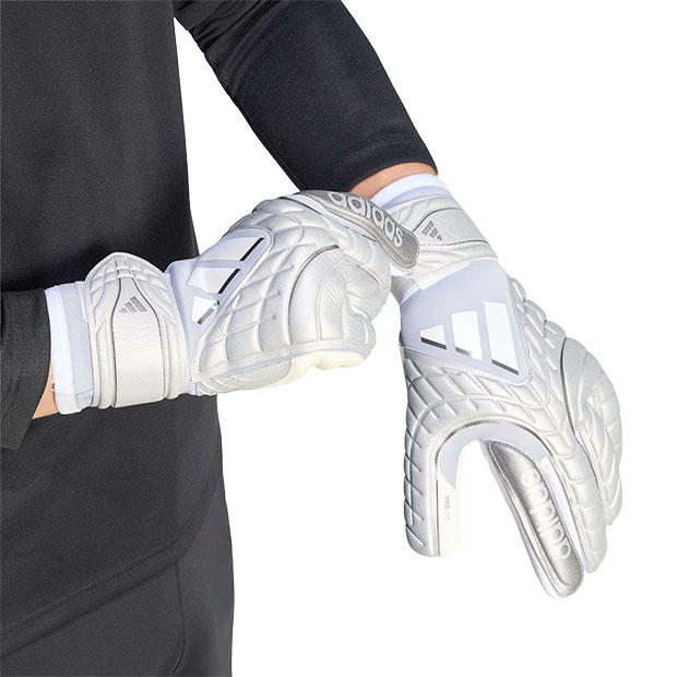 レビュー アイテム説明 発売月 2026/03 価格 ¥17,600(税込) 詳細情報 アディダス、大人/メンズ用ゴールキーパーグローブ。 コパシリーズとのデザイン連動モデル。自分好みのフィット感に調整可能な、伸縮性に優れたラテックスリストストラップモデル。指に心地よくフィットするロールフィンガータイプ。ラテックスでカバーされたサムラップがグリップ範囲を広げフィット感を向上。あらゆるピッチコンディションで優れたグリップ力と衝撃吸収性を発揮するURG 2.0フォームを採用。 ◆ネガティブカット カラー:グローリーグレー×ルシッドアクアマリン×ホワイト モデル:2026年春夏