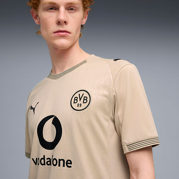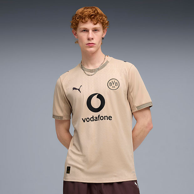 レビュー アイテム説明 発売月 2026/03 価格 ¥16,500(税込) 詳細情報 ドイツ・ブンデスリーガの強豪、ボルシア・ドルトムント、2025-2026年シーズンモデル、レプリカユニフォーム。 選手着用ユニフォームのレプリカモデル。スタジアム・ローテ・エルデ(Stadion Rote Erde)100周年記念デザイン。大人/メンズ用。 ◆取り扱い店舗限定アイテム サイズ:インターナショナル カラー:アラバスター モデル:2026年春夏