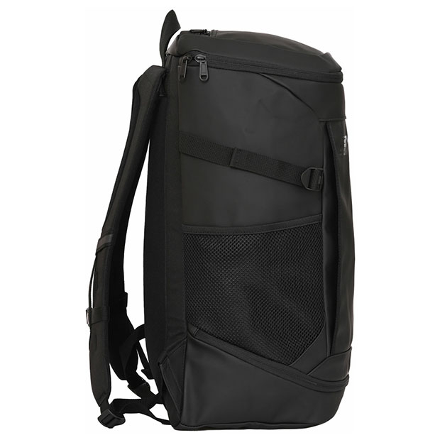 ニューバランス、大人/メンズ用バックパック。 定番の35Lバッグ。全面のマット調PUコーディングと撥水ファスナーを採用した、水や汚れに強い仕様。メインルームのノートPC用ポケット、天蓋のファスナー付きポケット、左右のメッシュポケット、前部サイドポケット、小物用フックなど、収納力抜群。通学や通勤などデイリーユースに最適。 素材:合成皮革、ポリエステル サイズ:OSZ(約33×50×22cm、約35L) カラー:ブラック モデル:2026年春夏 |