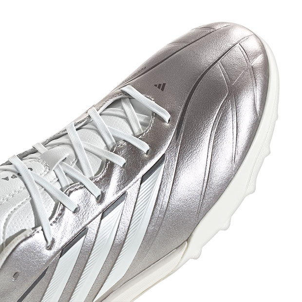 レビュー アイテム説明 価格 ¥11,000(税込) アッパー 天然皮革 人工皮革 天然+人工 ニット メッシュ 詳細情報 アディダス、大人/メンズ用トレーニングシューズ。アイスコールドプレシジョンパック(ICE COLD PRECISION PACK)。 伝統と革新を融合し、快適性・ボールタッチ・フィット感にこだわったターフシューズ、エントリーモデル。フュージョンフィールテクノロジーによるレザーのしなやかさと戦略的に配置されたパッドが融合し、繊細なボールコントロールを損なうことなく快適さを向上。3Dハプティックプリントがボールのグリップ力を向上。軽量EVAミッドソールがクッション性と柔軟性を発揮。パッド入りフローティングシュータンとフォーム層がシューレースの締め付けを和らげ、パーフォレーション加工が透湿性を確保。クッション性のあるヒールにフォームをプラスすることで、踏み出すときの快適さがさらに向上。ターフコート対応。 ◆取り扱い店舗限定アイテム アッパー:合成皮革 アウトソール:ゴム底 対応グラウンド:屋外コート(ターフコート) カラー:タープメタリック×ゼロメタリック×ナイトメタリック 発売:2026年3月(NEWカラー)