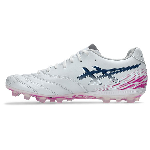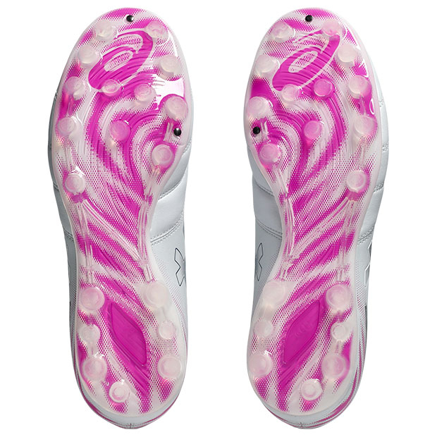 人工芝用AGソールが特長!人工芝で適度なグリップ力を求めるプレーヤーにおすすめ。fuzeGELも搭載され着地の衝撃を緩和してくれて足への負担を軽減してくれる。安定性や接地感、足裏でのボールの扱いやすさも良い。